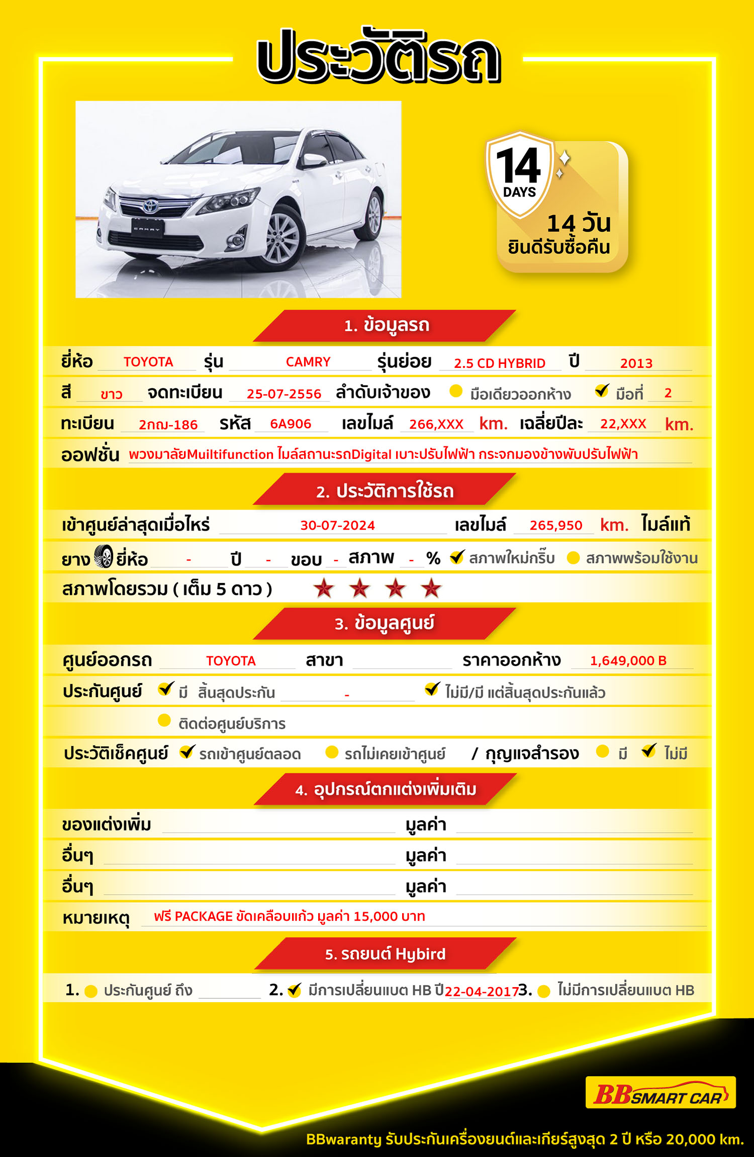 TOYOTA CAMRY 2.5 CD HYBRID โฉมปี (12-18) 2013