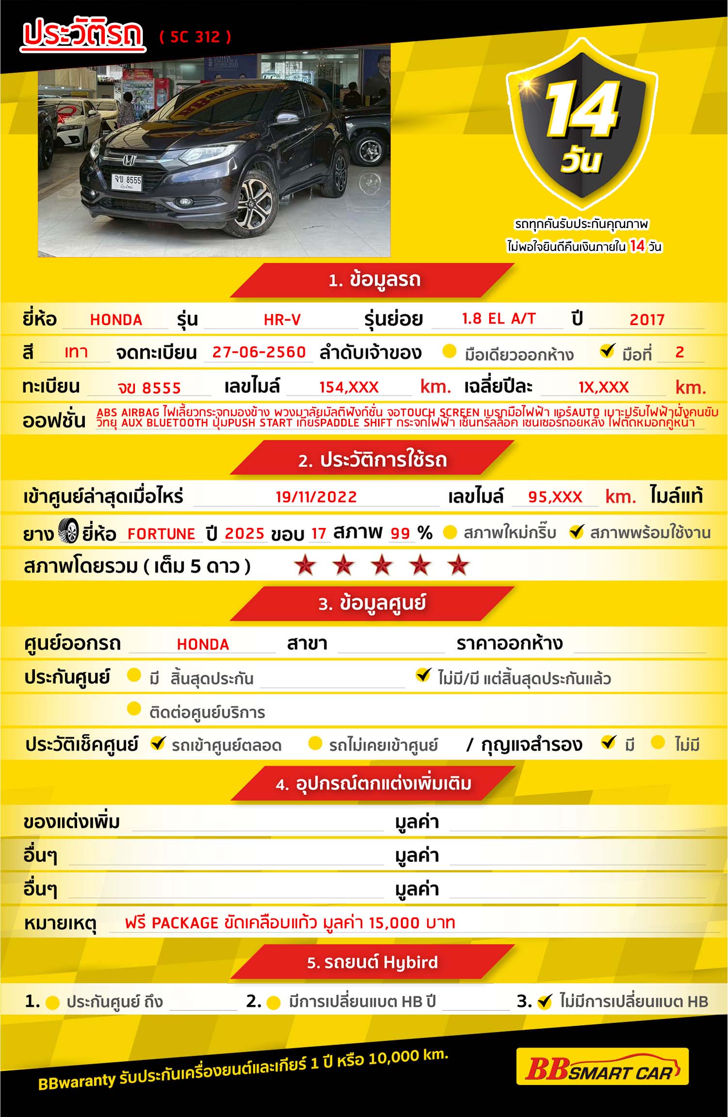 HONDA HR-V 1.8 [EL] โฉมปี (14-21) 2017